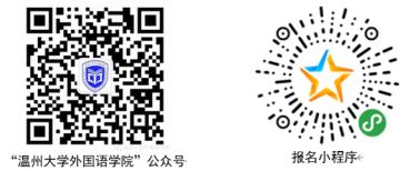 外国语学院”公众号,在“英语阅读竞赛”相关推送最下方点击“阅读原文”或识别下方小程序,填写报名信息,并在uchallenge.unipus.cn完成注册报名。报名截止时间9月19日。注意:各位参赛选手在注册报名时务必选择9月26日的比赛场次,其他场次无效。