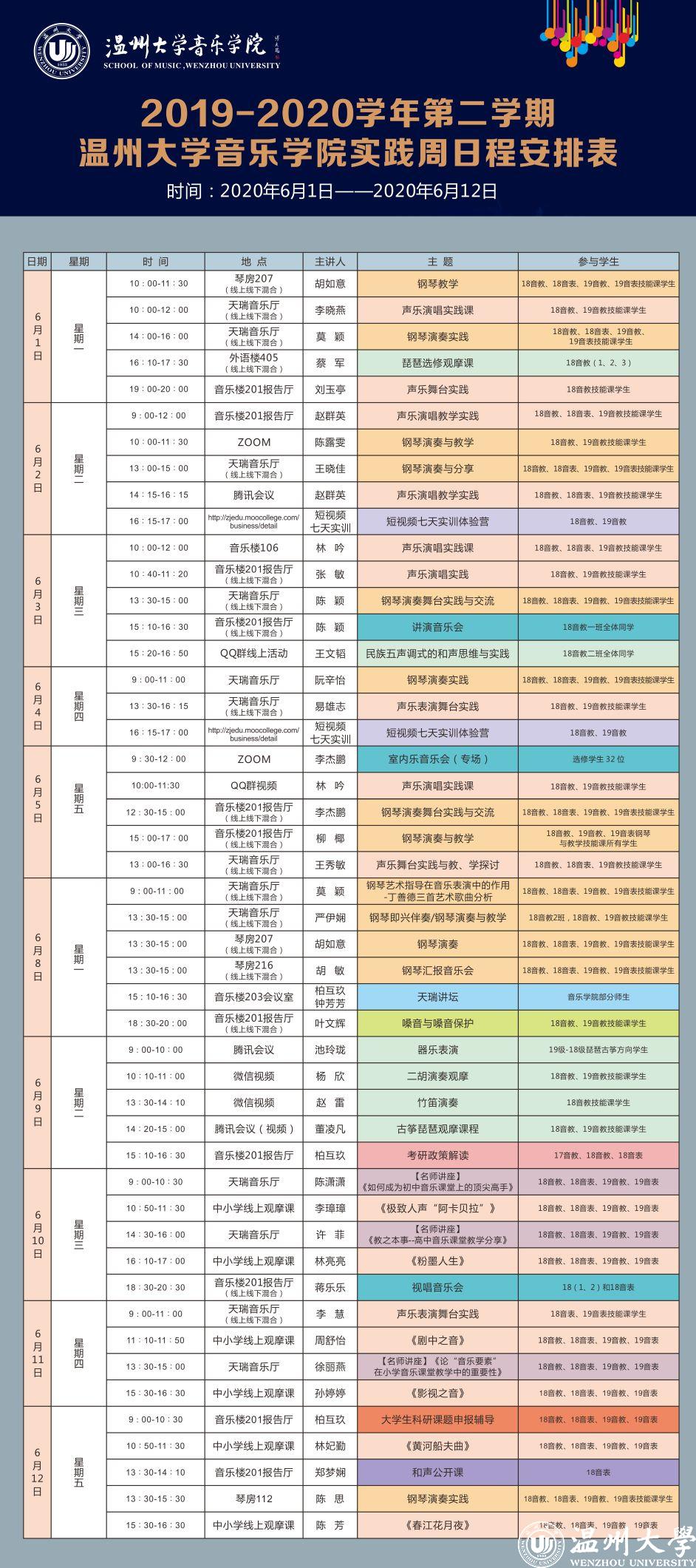 2019-2020学年第二学期皇冠博彩 实践周日程安排表